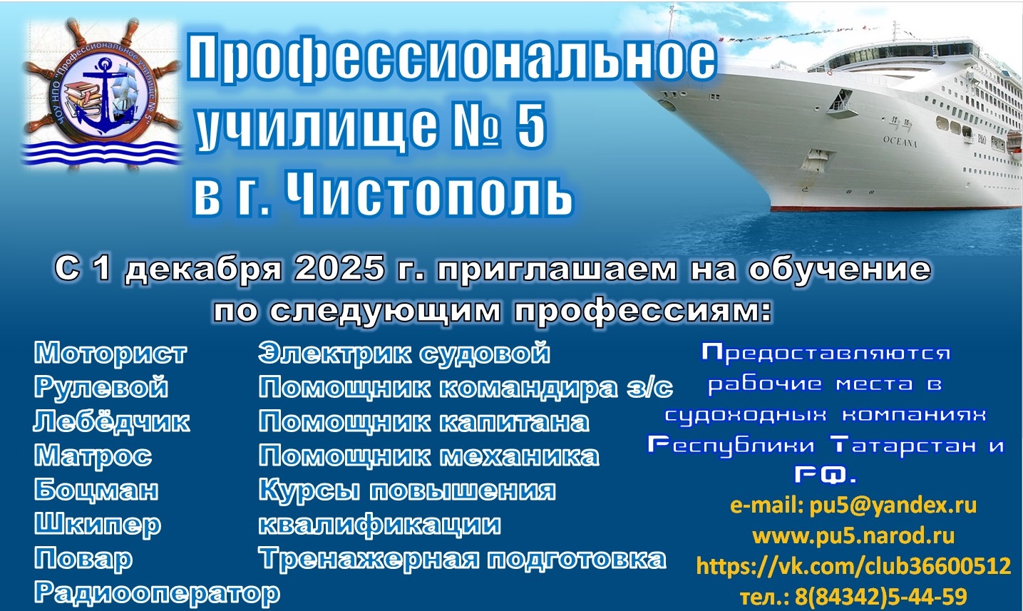 ЧПОУ "Профессиональное училище № 5" объявляет о начале занятий по следующим направлениям: ... Читать дальше » |
